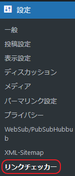 Broken Link Checkerのオプション画面は、ダッシュボード上の「設定欄:リンクチェッカー」を選択しましょう。