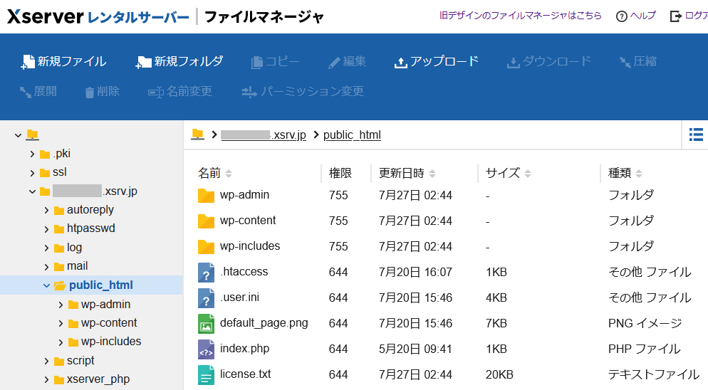 - ディレクトリ内の「wp-」で始まるphpファイル及び「.htaccess」などの設定ファイル