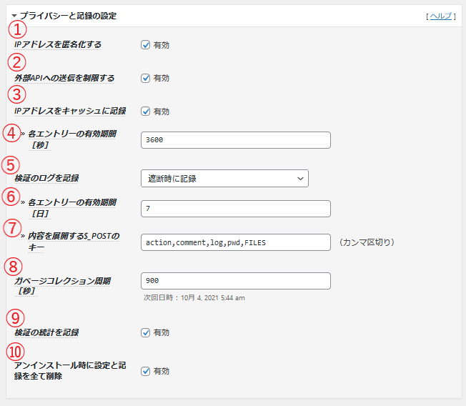 アンインストール時に、このプラグインの設定や記録された IP アドレスを
