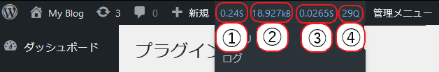 プラグインの有効化後、WordPressの管理ツールバーメニュ上に数字の羅列表示が追加されるようになり