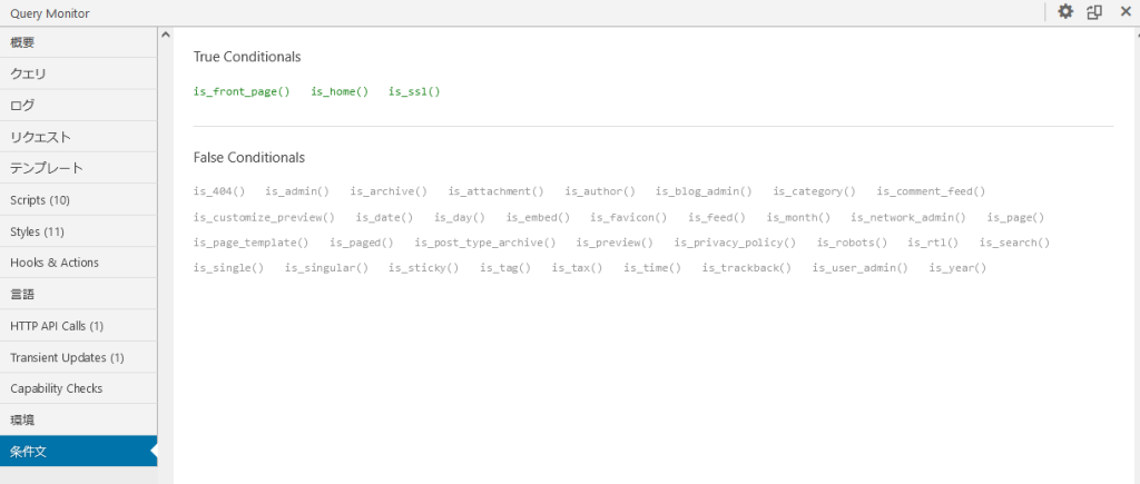現在のリクエストに関するすべてのWordPress条件を表示します。