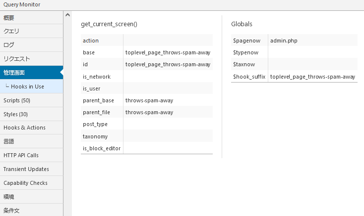 クエリモニターに表示されるすべての情報は、 現在のページの読み込みに関するものです。