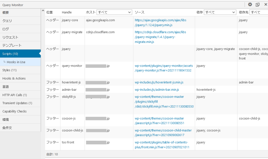 • コンポーネント(WordPressコア、プラグインX、プラグインY、テーマ)でクエリをフィルタリングする