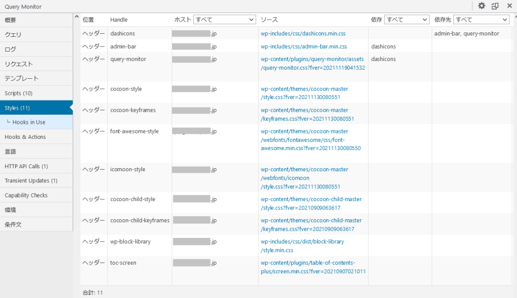 すべてのスクリプトとスタイルが一覧を表示します。