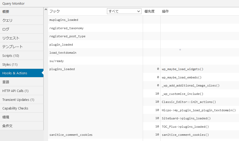 フックとアクションによって引き起こされたエラーを識別及びフィルタリングし確認することができます。
