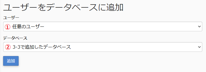 ①:先頭の「(mixhostユーザー名)_」を含めた文字列がデータベースのユーザー名になります。