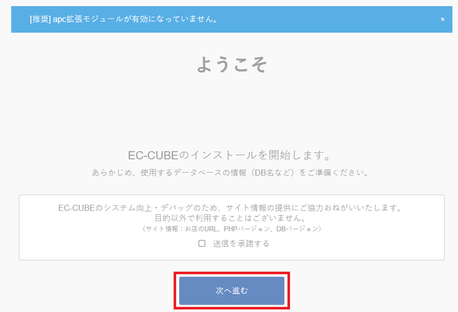 「[拡張]apc拡張モジュールが有効になっていません。」と表示されても問題はありませんが、気になる場合は以下をご参照ください。