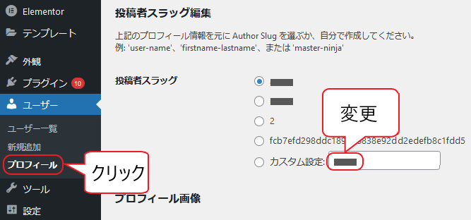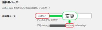 投稿者スラッグ編集では、authorに関する以下の設定を変更することができ基本的には、変更不要です。