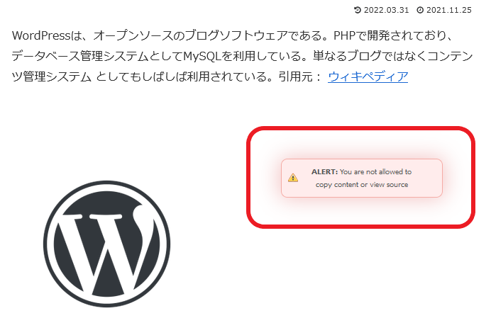 | 選択無効のメッセージ | ・Content is protected !! |