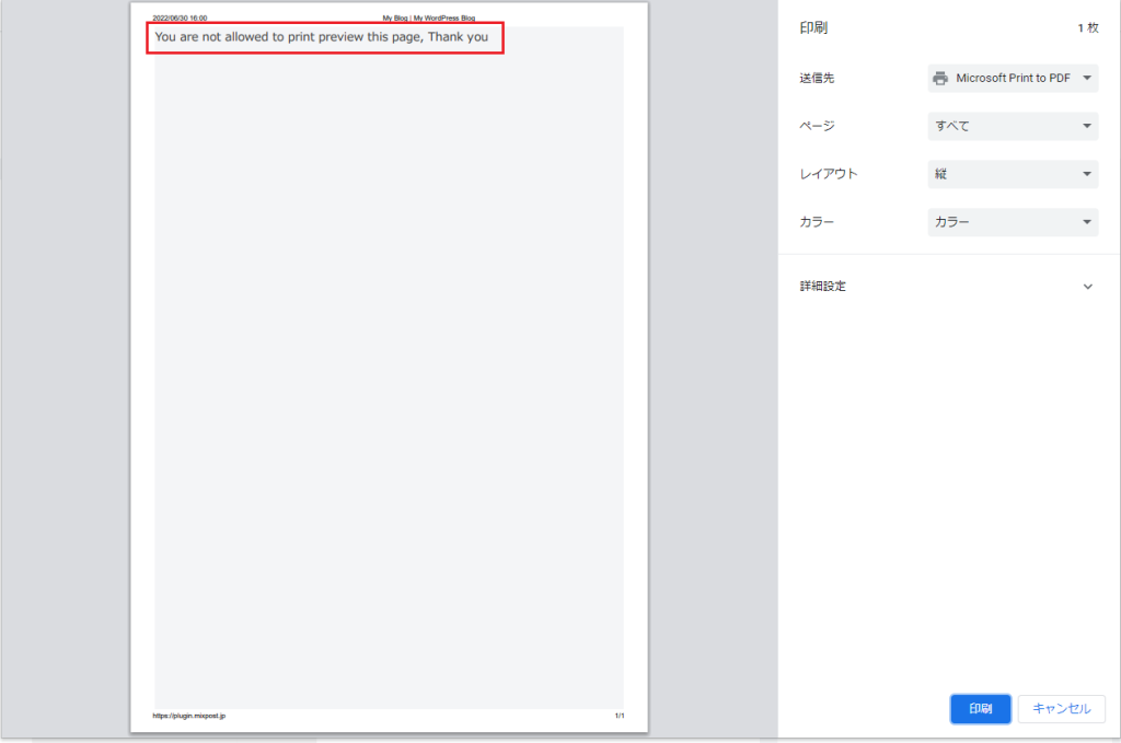 | 印刷プレビューのメッセージ | You are not allowed to print preview this page, Thank you |