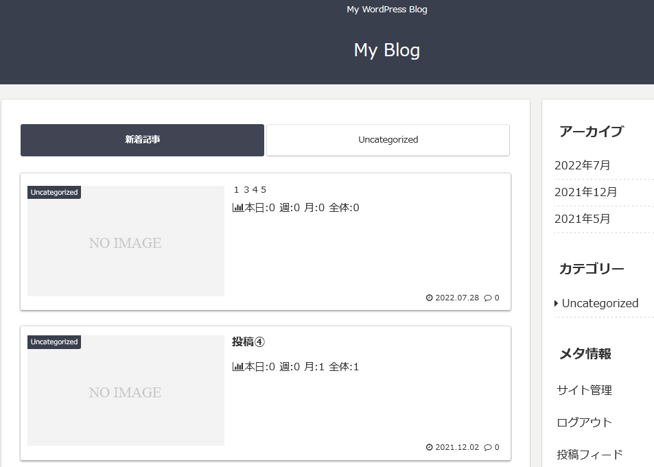 ・投稿日の表示:「有効」 ・コメント数の表示:「有効」 |