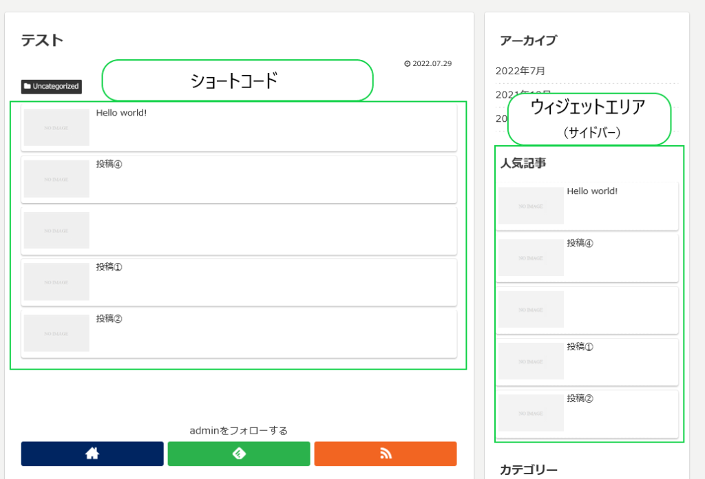 人気記事一覧を表示する方法として「ショートコードの挿入」と「ウィジェットの追加」の2つの方法があります。