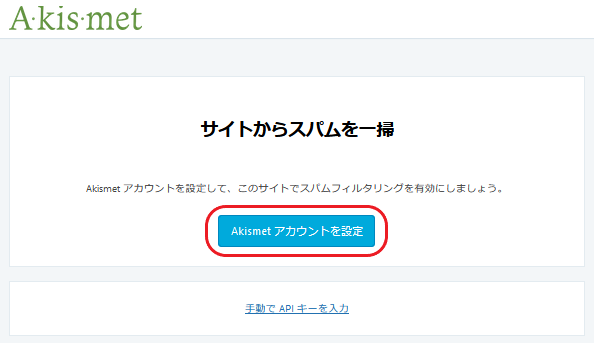 Akismetを利用するには、アカウント設定を行い「API KEY」を発行する必要があります。