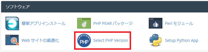 - 「ソフトウェア」項目の「Select PHP Version」をクリックしてください。
