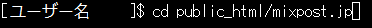 cd /home/(ユーザー名)/public_html/(OpenPNEをサーバーにアップロードで作成したフォルダー名)